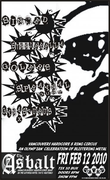 VANCOUVERS OWN 5 RING CIRCUS AND IANS BIRTHDAY BASH: Sinned, SINNDERELLA, The Golers, Spraynal GUNT, Gynosaurus X @ The Astoria  Feb 12 2010 - Feb 8th @ The Astoria