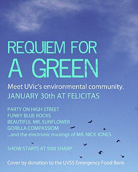 Requiem for a Green: The Party on High Street, the funky blue rocks, Beautiful Mr. Sunflower, Gorilla Compassion, Mr. Nick Jones @ Felicita's Pub Dec 31 1969 - Feb 8th @ Felicita's Pub