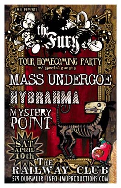 . Saturday, April 10th IMU presents The FURY Tour Homecoming Party w/ special guests MASS UNDERGOE, HYBRAHMA & MYSTERY POINT @ The Railway Club, 579 Dunsmuir . Doors 8pm / Cover $10 @ the door