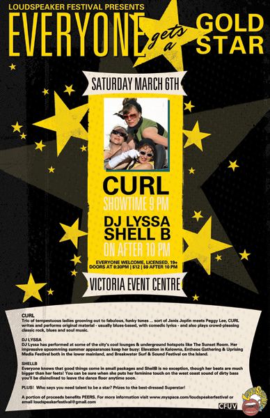 LoudSpeaker Festival presents EVERYONE GETS A GOLD STAR - A night of live music, DJs and Dance. Featuring blues-rockers CURL - a trio of tempestuous women singing original tunes with a comedic twist.