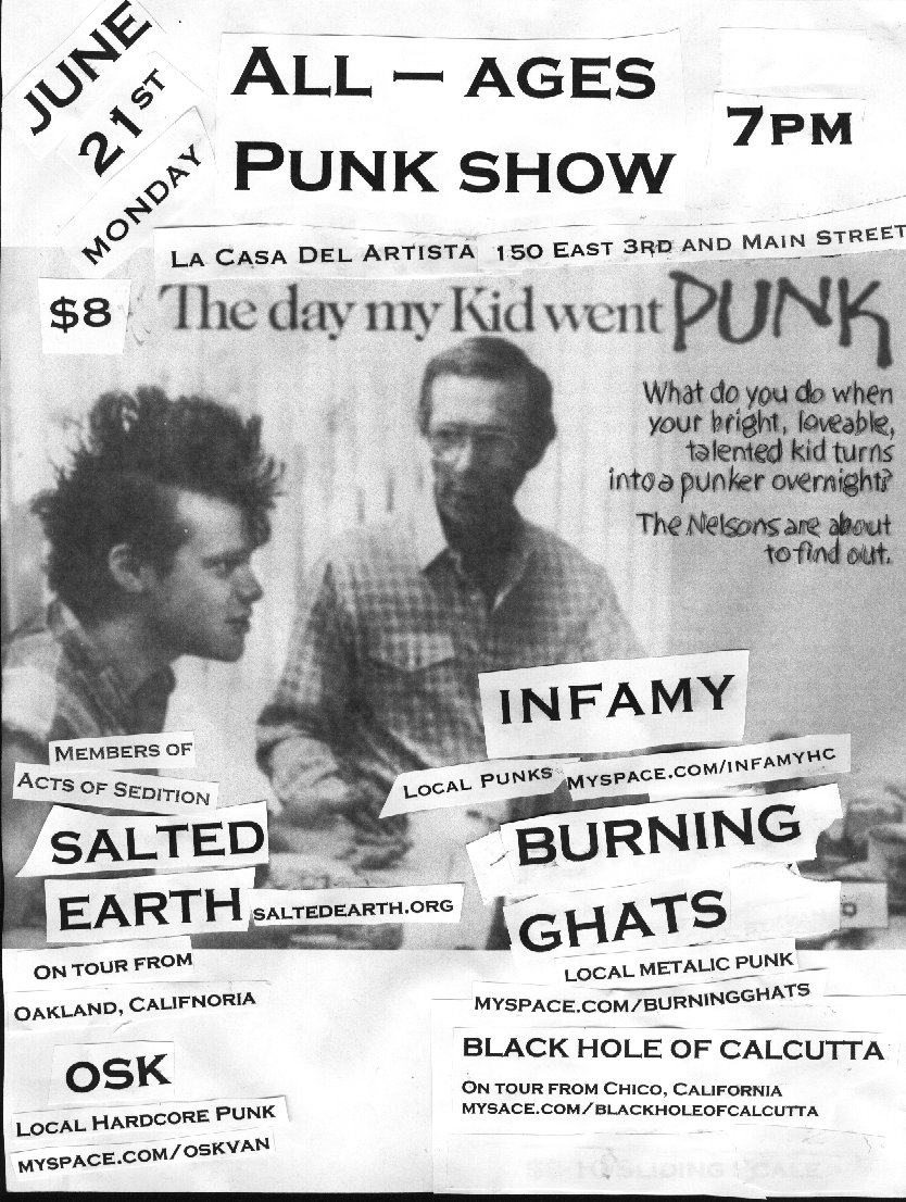ALL - AGES PUNK SHOW: Infamy, SALTED EARTH , Burning Ghats, BLACK HOLE OF CALCUTTA , Osk @ La Casa Del Artista Jun 21 2010 - Feb 8th @ La Casa Del Artista