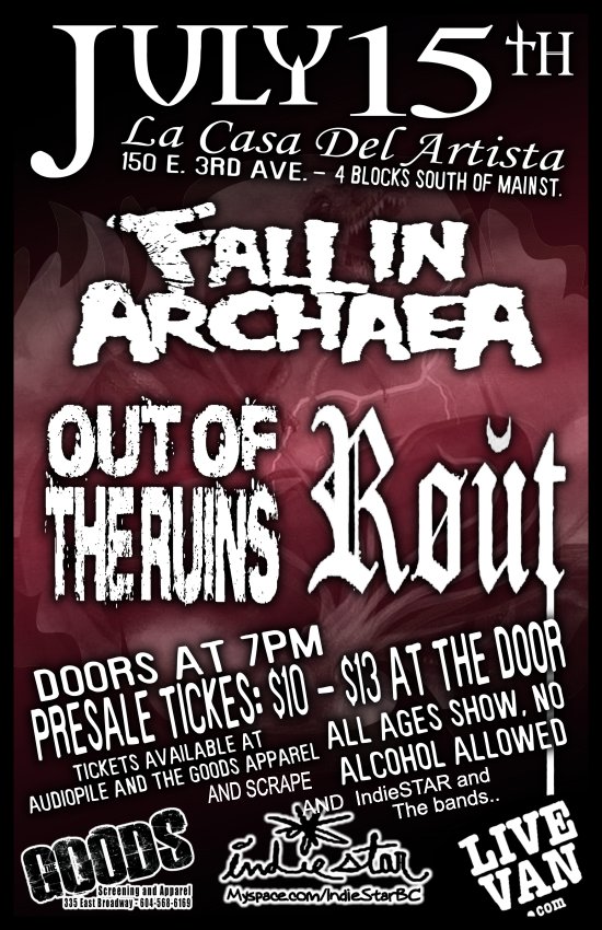 ROUT, Out Of The Ruins, T. B. A., T. B. A. @ La Casa Del Artista Jul 15 2010 - Feb 6th @ La Casa Del Artista