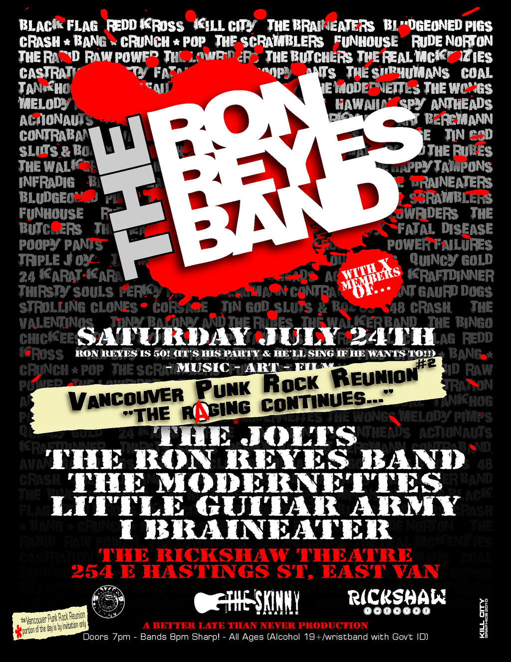 Ron Reyes is 50! (It’s his party, and he’ll sing if he wants to!): The Jolts, The Ron Reyes Band, Modernettes, Little Guitar Army, I, Braineater, Art, FILM, Vancouver Punk Rock Reunion #2