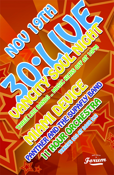 MIAMI DEVICE , PANTHER & THE SUPAFLY BAND, 11 Hour Orchestra @ The Forum Nov 19 2010 - Feb 6th @ The Forum