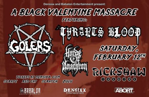 The dominating and sinister blackened death-metal locals Tyrant's Blood return to the Rickshaw to top their prior punishing display on the venue’s stage. Prepare to be brutalized violently by the unholy might of