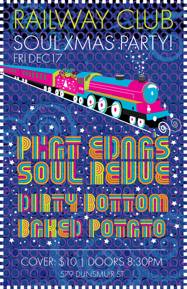 Phat Edna’s Soul Revue: Get into a sweet Christmas mood with the music of Stevie Wonder, Al Greene, Michael Jackson, and Earth, Wind and Fire. Coming amazingly close to replicating the original hits, this powerhouse dance machine delivers a hip-shakin' party experience from top to bottom! Complete with sassy horns, a throbbing rhythm section, tight vocal harmonies, all topped off by a prancing, entrancing, wailing lead singer... this is the goods!