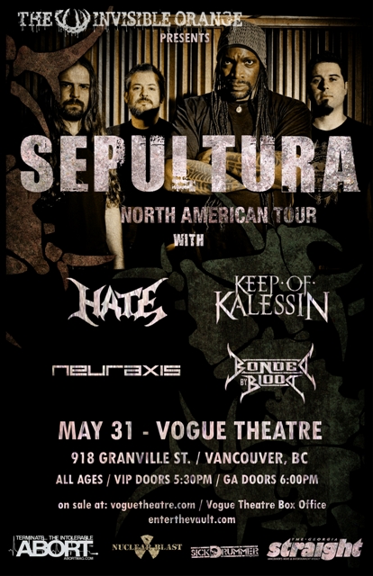 Sepultour 2011: Sepultura, Hate, Keep Of Kalessin, Neuraxis, Bonded by Blood @ The Vogue Theatre May 31 2011 - Feb 8th @ The Vogue Theatre