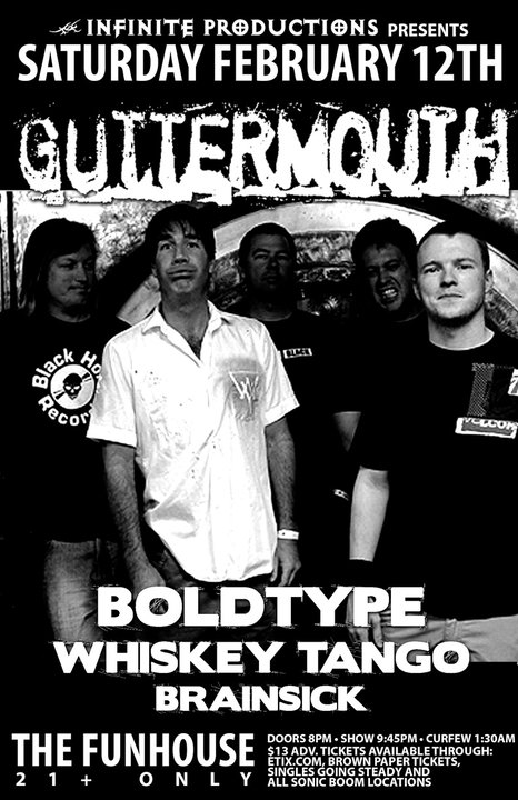 Guttermouth, Boldtype, Whiskey Tango, Brainsick @ The Funhouse Feb 12 2011 - Feb 6th @ The Funhouse