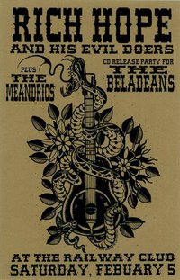 Rich Hope and his Evil Doers: Hot on the heels of his single release, "I See Trouble", Rich Hope brings his two-man quartet of garage boogie blues rock'n'roll back to the venerable Railway Club.
