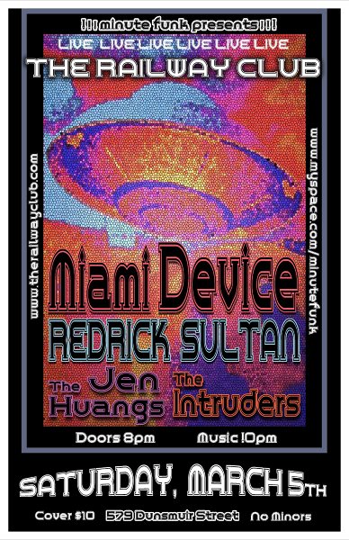 Miami Device is a 10-piece Afro-beat/Funk band based out of Vancouver, British Columbia, Canada. Since their inception in 2007 the band has grown from a small four-piece funk experiment into the deep grooving, Fela Kuti inspired, boogiethon that exists today. With heavy driven horns atop syncopated guitars and layered percussion they produce a dance inducing, highly energetic live show. They have consistently been able to pack venues by building a word of mouth following consisting of whoever loves getting down and having a good time.