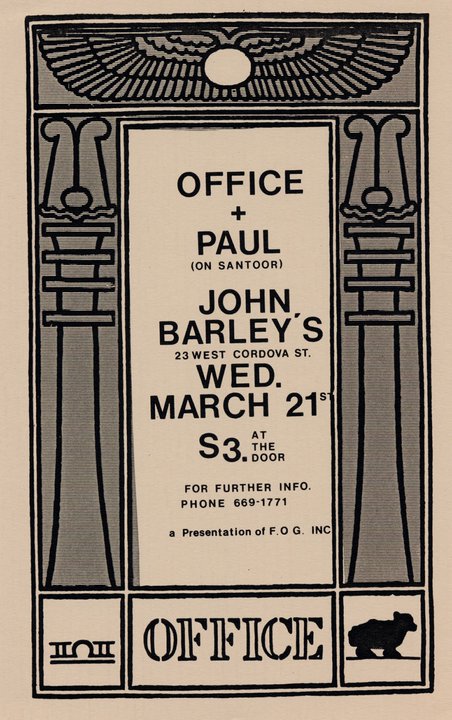 OFFICE, Paul Serret @ John Barley's Mar 21 1984 - Feb 6th @ John Barley's