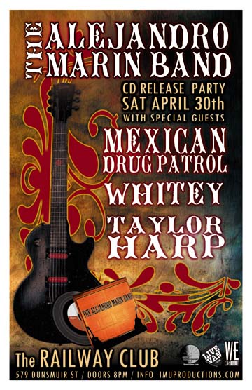 . Saturday, April 30th IMU presents The ALEJANDRO MARIN BAND CD Release Party w/ MEXICAN DRUG PATROL, WHITEY & TAYLOR HARP @ The Railway Club, 579 Dunsmuir . 9pm / $10 cover @ the door