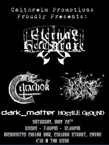 Eternal Helcaraxe, CELTACHOR, WOUND UPON WOUND , DARK_MATTER, HOSTILE GROUND @ McGinnitys Cellar May 28 2011 - Feb 7th @ McGinnitys Cellar