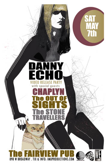 . Saturday, May 7th IMU presents DANNY ECHO VIDEO RELEASE PARTY w/ CHAPLYN, The OUT OF SIGHTS & The STONE TRAVELLERS @ The Fairview Pub, 898 West Broadway . Doors 8pm / Cover $10 . Purchase advance tickets online @ http://www.imuproductions.com/tix