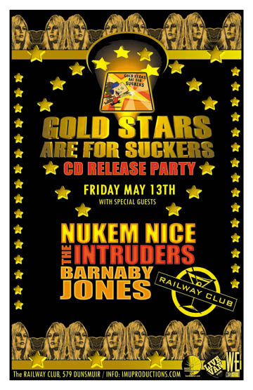. Friday, May 13th IMU presents GOLD STARS ARE FOR SUCKERS CD Release Party w/ The INTRUDERS, BARNABY JONES & NUKEM NICE @ The Railway Club, 579 Dunsmuir . 9pm / $10 cover @ the door