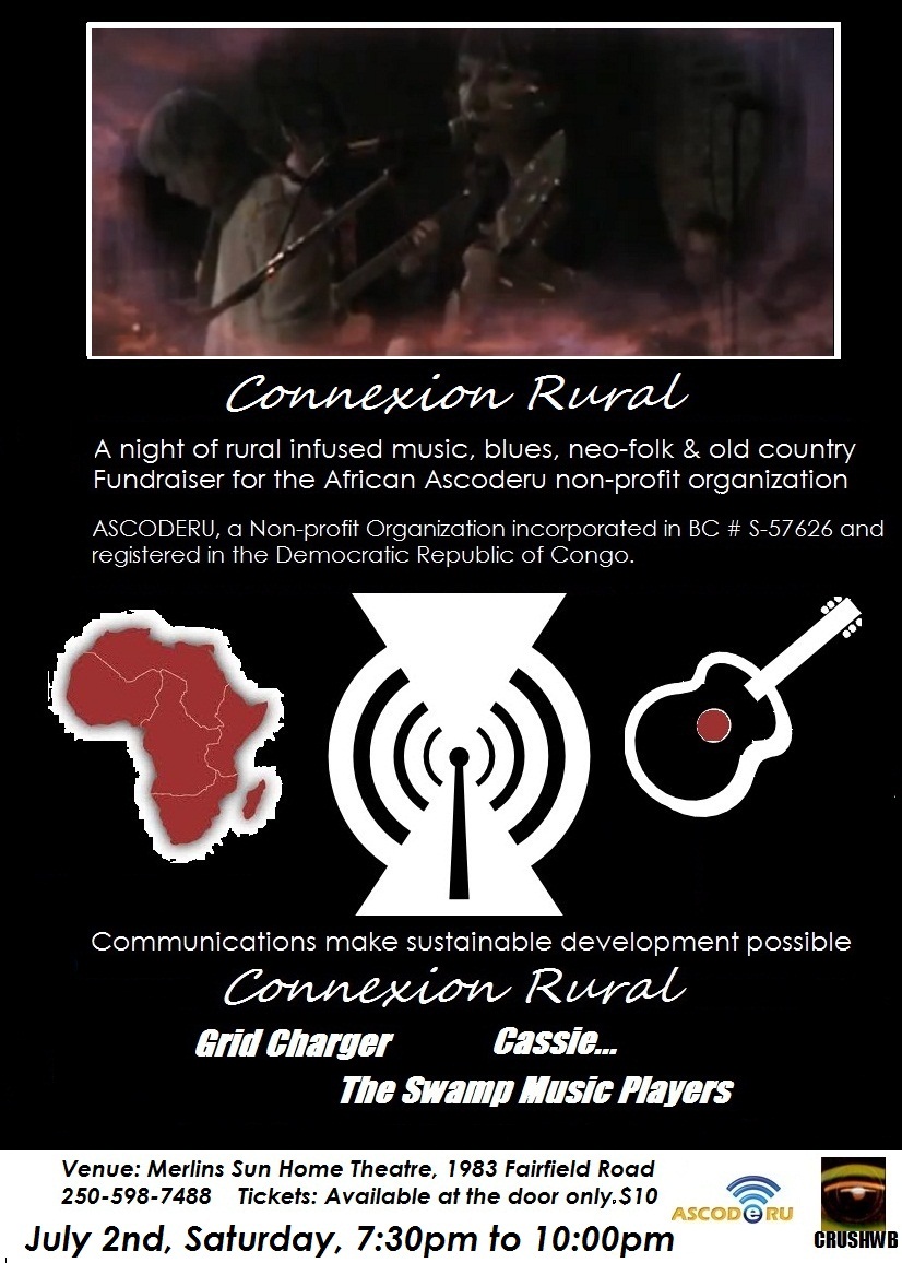 Connexion Rural a fundraiser for Ascoderu: Swamp Music Players, Cassie..., Grid Charger, Blake Andison @ Merlin's Sun Inc. Jul 2 2011 - Feb 6th @ Merlin's Sun Inc.