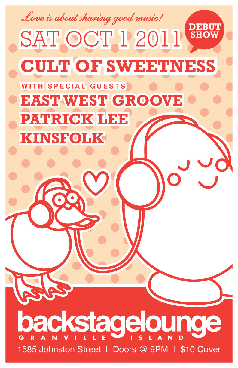 Cult of Sweetness' Debut Show!: Patrick Lee, Kinsfolk, East West Groove, Patrick Lee, Cult of Sweetness @ Backstage Lounge Dec 31 1969 - Dec 22nd @ Backstage Lounge