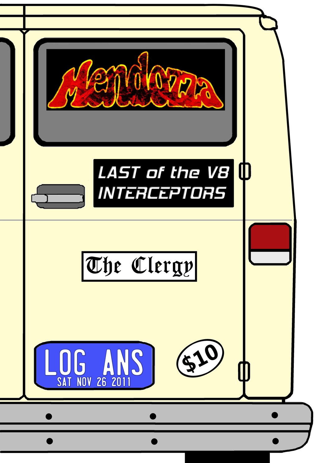 Mendozza, Last of the V8 Interceptors, The Clergy, Absolute Underground TV episode 9:30pm @ Logan's Pub Nov 26 2011 - Feb 7th @ Logan's Pub