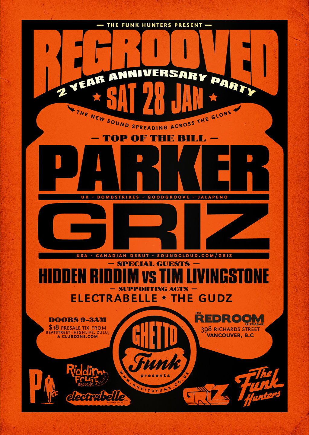 THE FUNK HUNTERS present:  REGROOVED CANADA - The 2 Year Anniversary Party!:  GRiZ , HIDDEN RIDDIM , Tim Livingstone, Electrabelle, The Gudz @ The Red Room Jan 28 2012 - Dec 23rd @ The Red Room