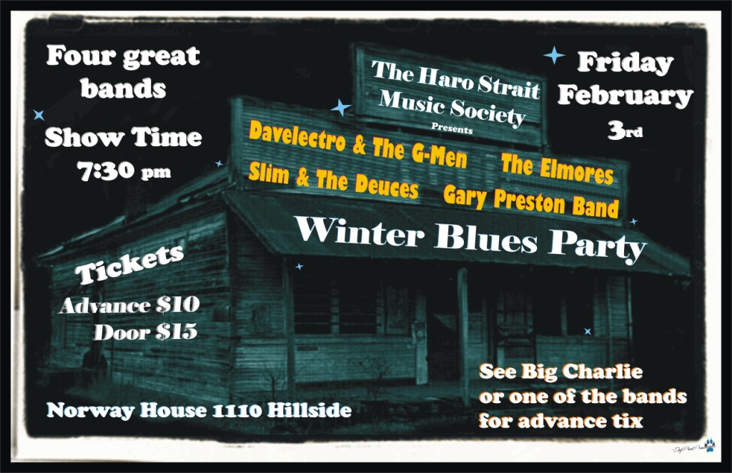 Winter Blues Party: Slim & The Deuces, Elmores, THE GARY PRESTON BAND, Davelectro @ Sons of Norway Feb 3 2012 - Feb 8th @ Sons of Norway