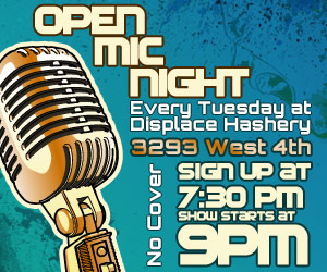 Every Tuesday at Displace Hashery 3293 West 4th. the best open mic in the west side of the city. Come and enjoy the performances of amazing musicians or come play and network with the music community. Sign up at 8:30 PM