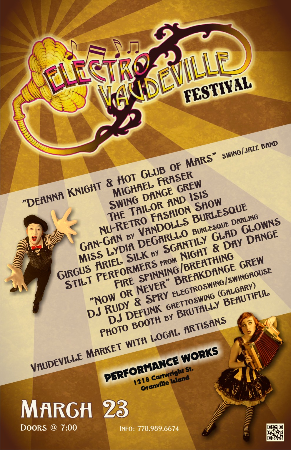 Electro Vaudeville Fest: Hot Club of Mars, Michael Fraser, The Tailor and Isis, THE VANDOLLS BURLESQUE, Miss Lydia DeCarllo , DJ Rudy & Spry,  Scantily Clad Clowns @ Performance Works Mar 23 2012 - Feb 5th @ Performance Works