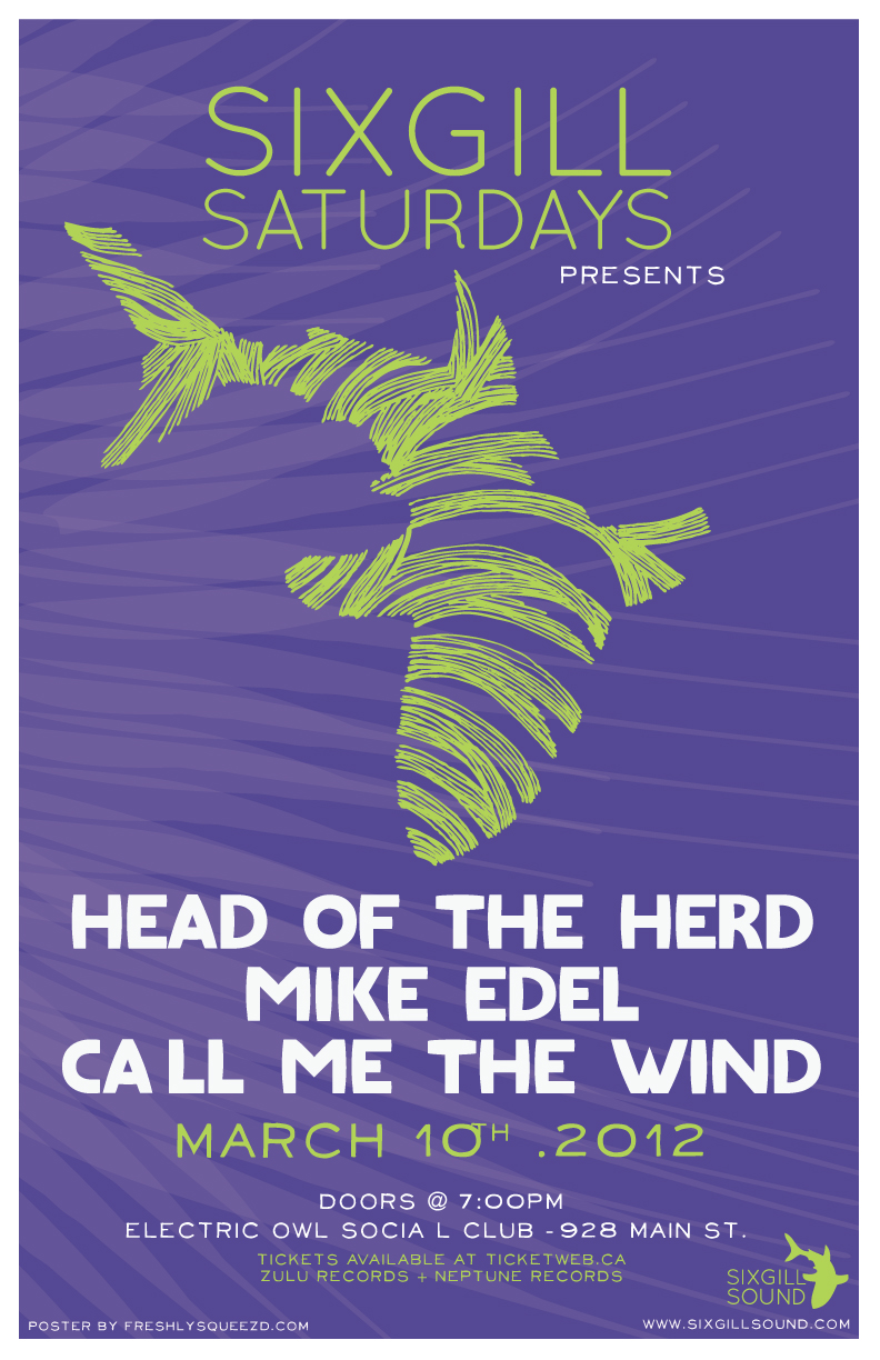Sixigill Saturdays Presents:: Head of the Herd, Mike Edel, Lydia Hol @ Electric Owl Mar 10 2012 - Dec 23rd @ Electric Owl