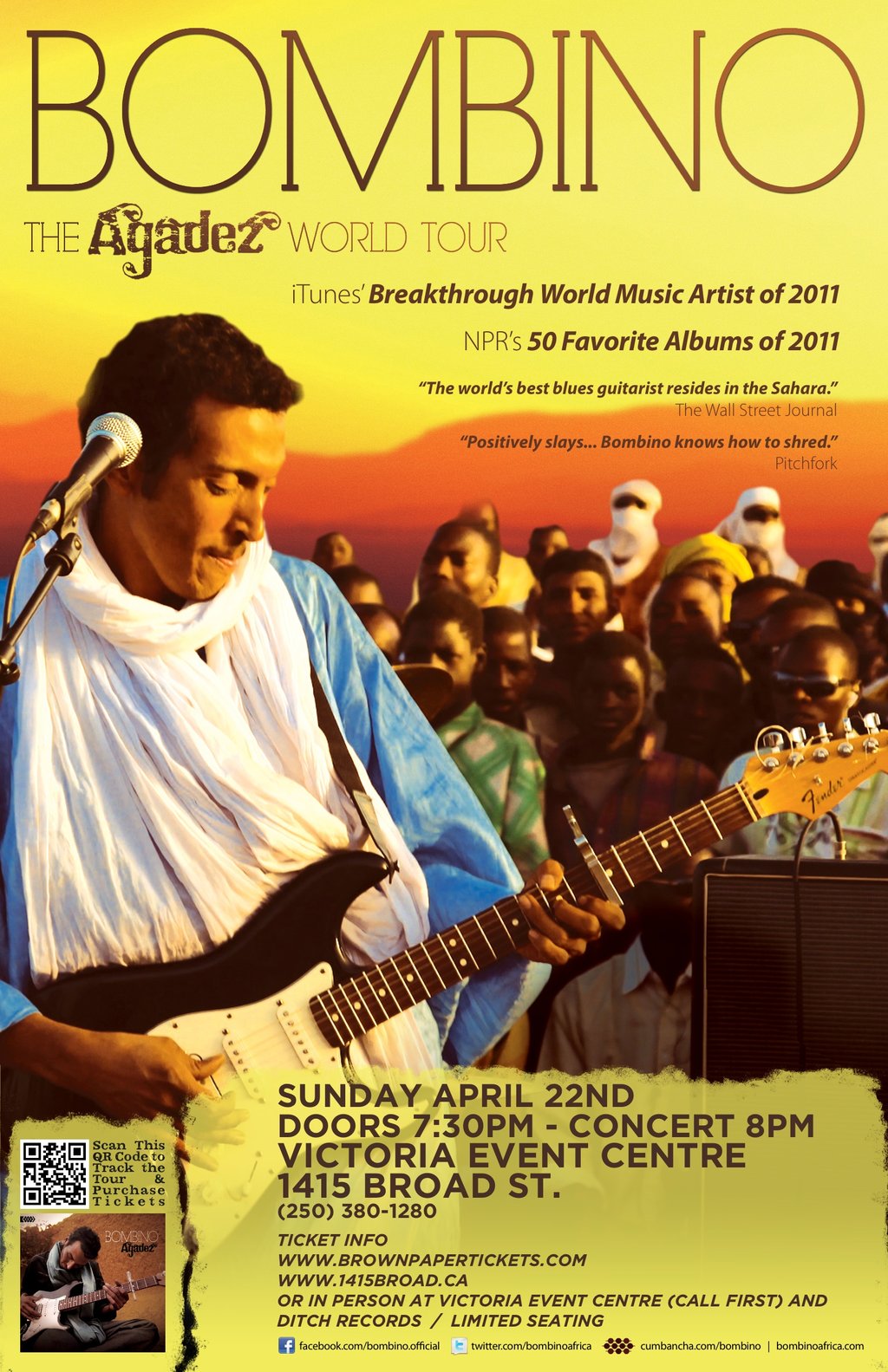 Omara "Bombino" Moctar, a young Tuareg guitarist and songwriter, was raised during an era of armed struggles for independence and violent suppression by government forces. His electrifying jams capture the spirit of resistance and rebellion while echoing with guitar riffs reminiscent of fellow Africans Tinariwen and Ali Farka Touré not to mention rock and blues icons such as Jimi Hendrix, John Lee Hooker and Jimmy Page. Already a superstar in the Tuareg community, with the release of Agadez on Cumbancha Discovery Bombino's stature as one of Africa's hottest young guitarists has been revealed to the world.