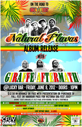 Victoria BC Ska Society is proud to announce that Natural Flavas is having their long-awaited album release at Lucky Bar, Victoria ON FRIDAY, JUNE 8TH WITH Giraffe Aftermath. Those that present (or purchase) Full Festival or Harbour Passes at the door will get in free of charge (Note there is limited capacity at Lucky Bar and this promotion has limited quantities so if you have the Full Fest or Harbour Pass show up earlier to present it for free admission)