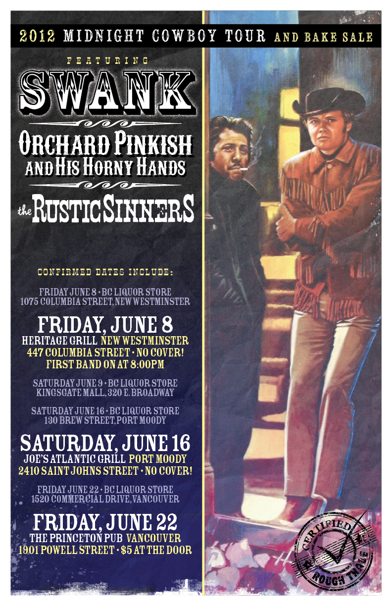 Second show of the Midnight Cowboy Tour. No Cover. Early Show. 2410 Saint Johns Street in Port Moody. Plus a bake sale. Come for the music and stay for the pie!