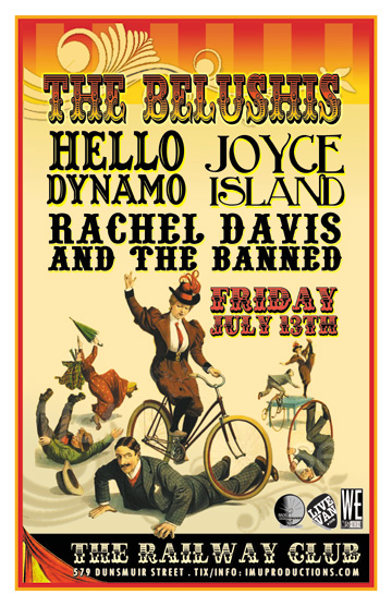 . Friday, July 13th IMU presents The BELUSHIS, HELLO DYNAMO, JOYCE ISLAND, SLOW WAVE SAGA & RACHEL DAVIS AND THE BANNED @ The Railway Club, 579 Dunsmuir . Doors 9pm / Purchase advance tickets online @ http://www.imuproductions.com/tix