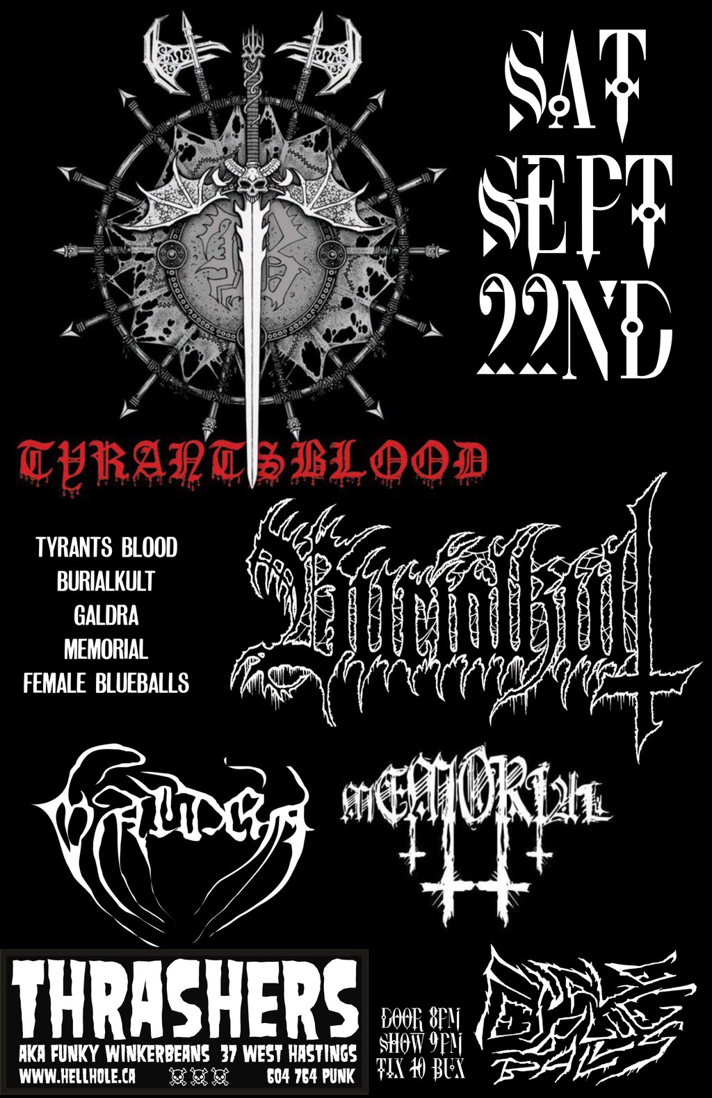 Tyrants Blood, BURIALKULT, GALDRA, Memorial, Female Blue Balls