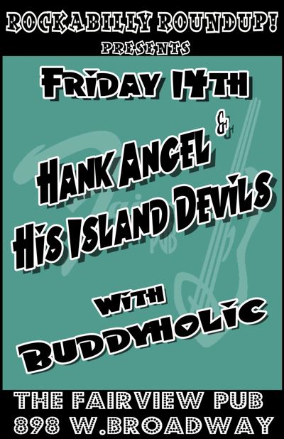 Rockabilly Roundup, Buddyholic, HANK ANGEL and his ISLAND DEVILS @ Fairview Pub Sep 14 2012 - Mar 23rd @ Fairview Pub