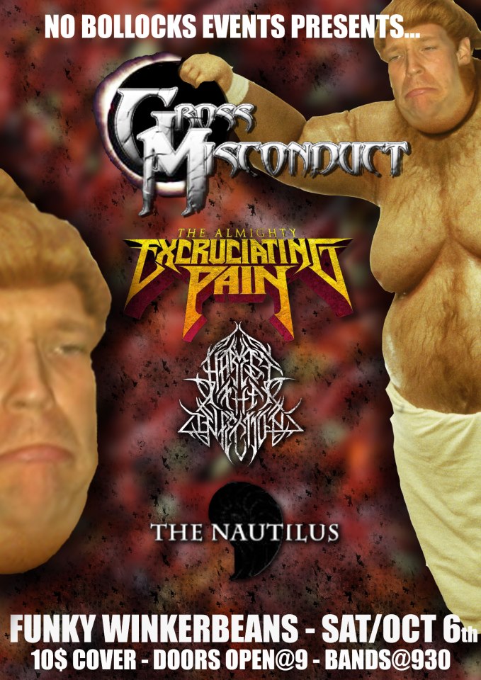 Gross Misconduct, Excruciating Pain, Harvest The Infection, The Nautilus @ Funky Winker Beans Oct 6 2012 - Feb 9th @ Funky Winker Beans