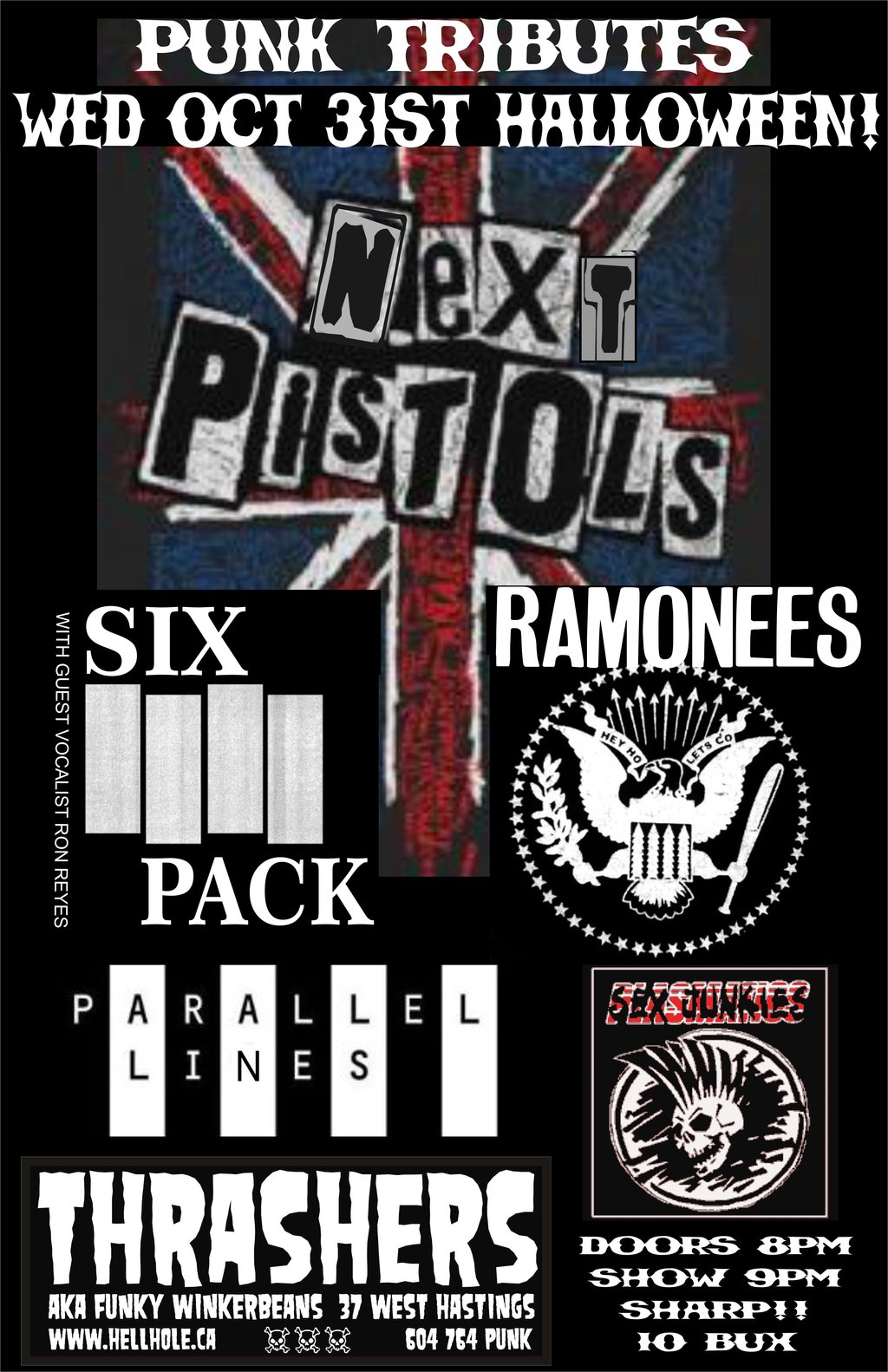 HALLOWEEN PUNK TRIBUTES!!: The Next Pistols, SIX PACK, Ramonees, Parallel Lines, PUSSY WHIPPED [BIKINI KILL] @ Funky Winker Beans Dec 31 1969 - Feb 7th @ Funky Winker Beans