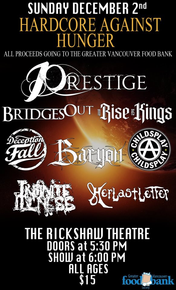 Cancelled - CANCELLED- Hardcore for Hunger: Prestige, Bridges Out, To Rise as Kings, Deception Falls, Baryon, Childsplay, Infinite Illness, Her Last Letter