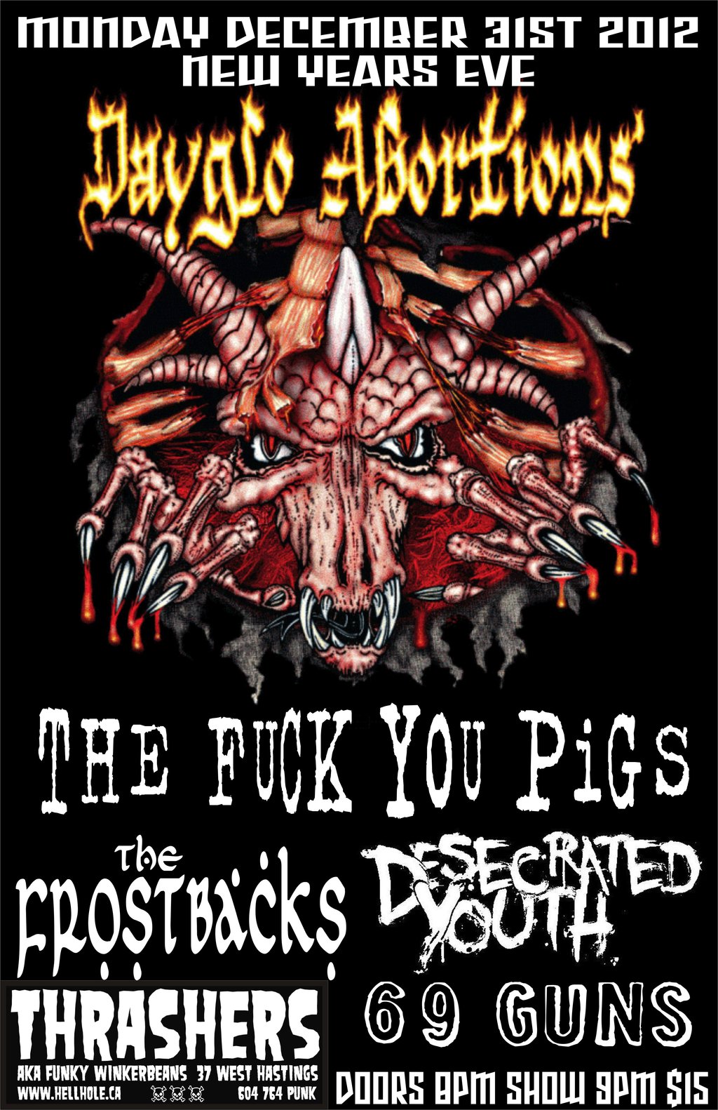 Dayglo Abortions, FUCK YOU PIGS (Cancelled), The Frostbacks, Desecrated youth, 69 GUNS @ Funky Winker Beans Dec 31 2012 - Feb 6th @ Funky Winker Beans