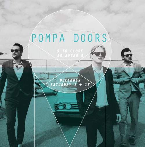 Pompadoors is a Pop-Americana band that formed in Los Angeles, California in 2012. Members Josh Wyper with brothers Eric Davis and Carl Davis got their roots performing cover songs in restaurants on their nights off from touring with their Vancouver based band The Left. The band is best known for creating a comfortable, lighthearted party atmosphere (9-close, 5$ after 9)