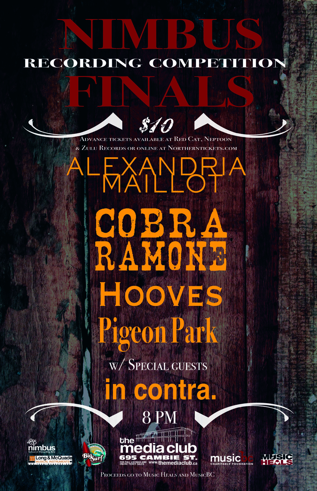 Nimbus Recording Competition Finals w/ Alexandria Maillot, Cobra Ramone, Hooves, & Pigeon Park. w/ special guests in contra.: Pigeon Park, The Hooves, Cobra Ramone, Alexandria Maillot, In Contra