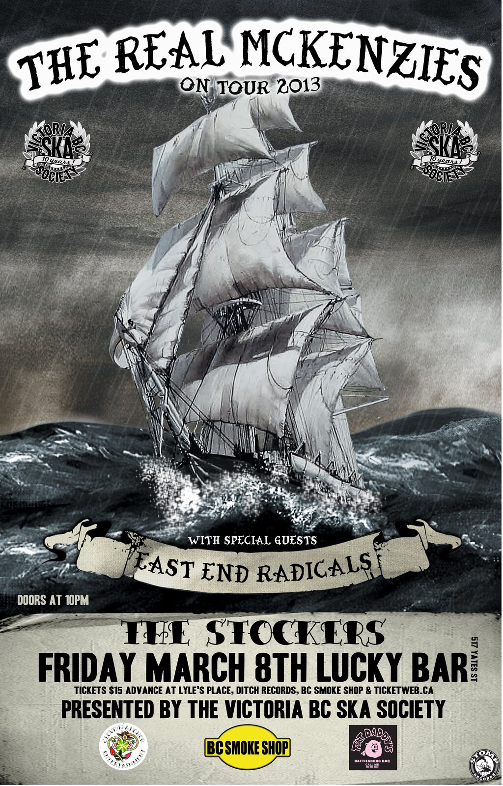 Join us Friday March. 8th for The Real Mckenzies St. Paddy's Day Tour and CD release of "Westwinds". Joining them are Vancouver's East End Radicals and Victoria's own garage rock n' roll The Stockers.