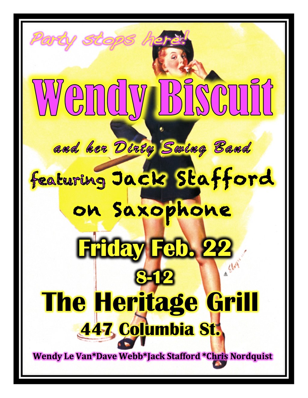 Wendy Biscuit Band, Dave Webb, Jack Stafford, Chris Nordquist @ The Heritage Grill Feb 22 2013 - Mar 25th @ The Heritage Grill