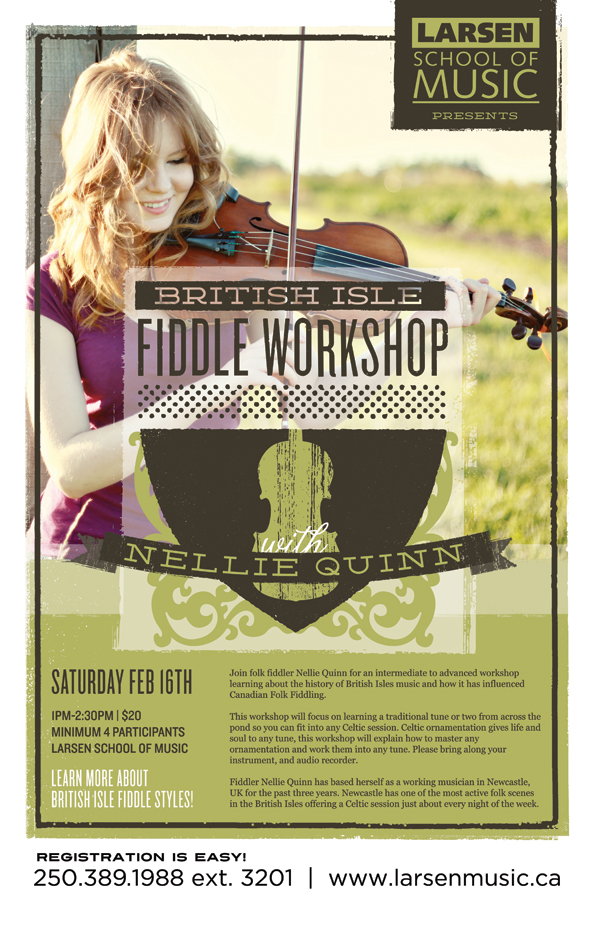 Join folk fiddler Nellie Quinn for an intermediate to advanced workshop learning about the history of British Isles music and how it has influenced Canadian Folk Fiddling.