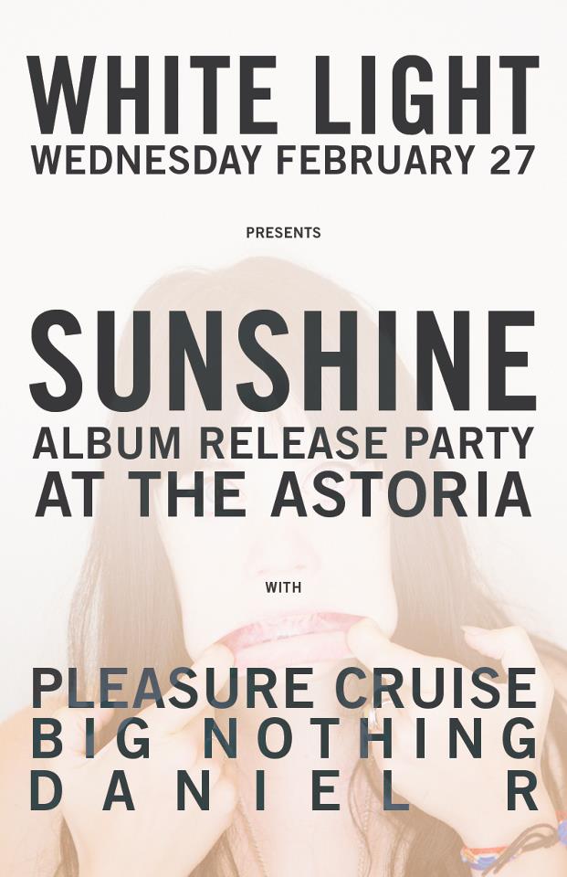 Sunshine is releasing their self-titled, debut album at the Astoria's weekly event, White Light.