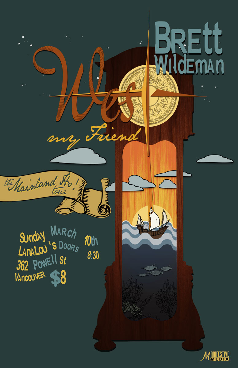 West My Friend (Victoria BC) sets sail with Brett Wildeman (Roberts Creek, BC) to embark on the Mainland Ho! Tour. The tour brings these groups together to share their finely crafted heart-felt tunes to audiences throughout southern British Columbia.