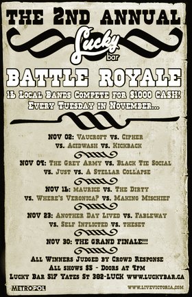 The 2nd Annual Battle Royale! (Night IV): Another Day Lived, Fableway, SELF INFLICTED, theset @ Lucky Bar Nov 23 2004 - Feb 7th @ Lucky Bar