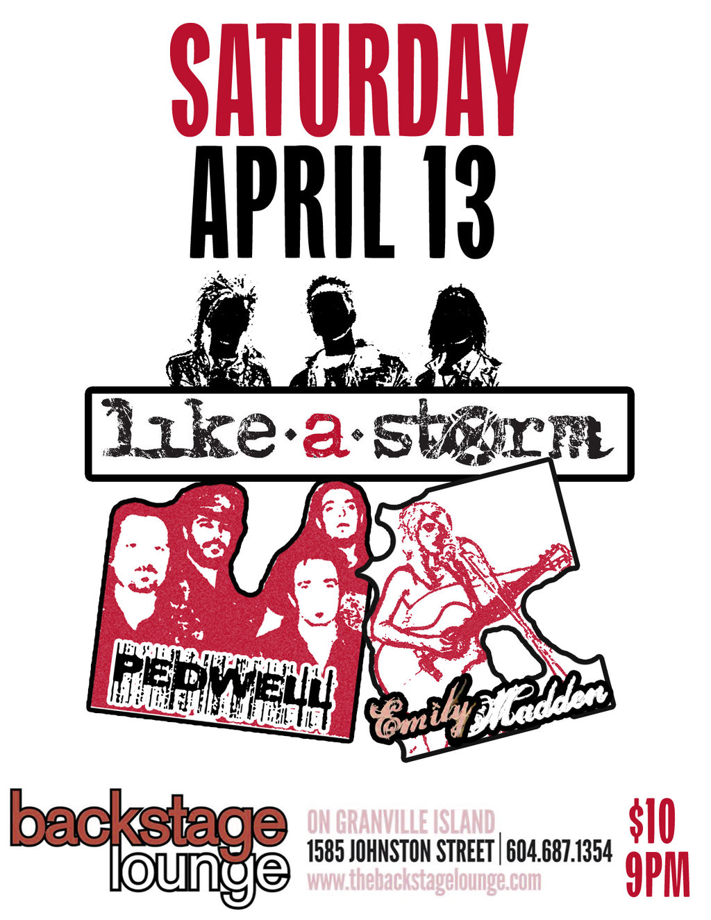 Like A Storm, Pedwell, Emily Madden @ Backstage Lounge Apr 13 2013 - Feb 8th @ Backstage Lounge