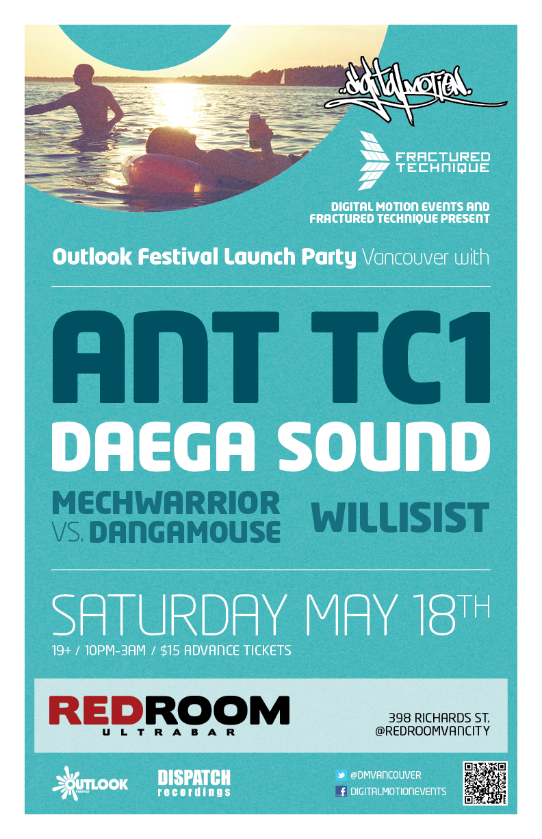 Outlook Festival launch Party 2013 - Vancouver: ANT TC1   (Fabic/Metalheadz/Dispatch Records), DAEGA SOUND, Mechwarrior vs. Dangamouse, Willisist vs. Eradik @ The Red Room May 18 2013 - Dec 22nd @ The Red Room