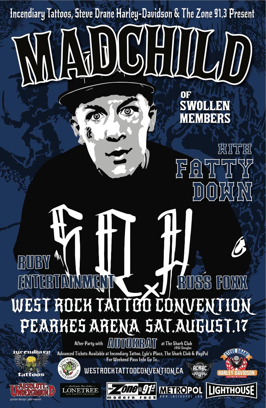.Saturday August 17th Madchild returns to Victoria for an exclusive show at the West Rock Tattoo Convention joining him in support are Fatty Down and Ruby Entertainment will be performing burlesque early in the day!