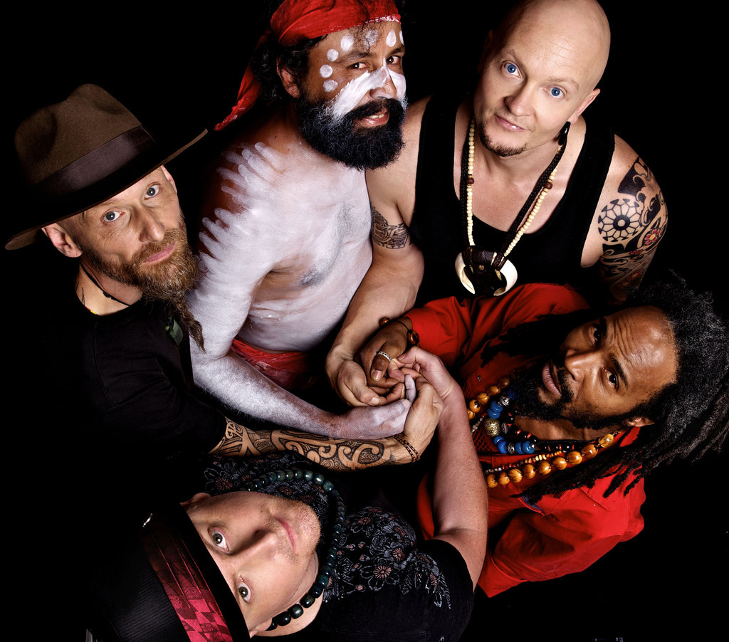 Ganga Giri, rhythmic didgeridoo virtuoso and percussionist, reflects much of the creative inspiration which Australia represents today. Explosive and pulsating, ambient and flowing at times - Ganga Giri is a pumping percussive multi-layered experience of complex grooves and raw, deep natural sound. He blends an array of tribal percussion with congas, djembe, bougarabou, Nigerian talking drum, mbira with authentic indigenous moves and Aboriginal dancing. Ganga Giri’s live show is a modern yet primitive celebration - a melting pot unifying many musical genres and cultures. Delivering his unique and authentic taste of multicultural Australia, Ganga Giri’s music has been widely & wildly appreciated by music lovers in many countries including Australia, Japan, Germany, Austria, Switzerland, Netherlands, New Zealand and the United States igniting audiences in clubs and music festivals all over the world. Jornick Joe Lick vocals, Dan Pearson drums, Gumaroy Indigenous song/dancer and Yeshe Reiners percussion/Mbira/N’goni