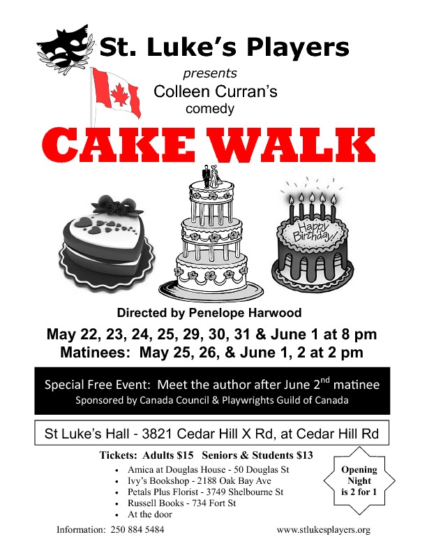 Six lucky contestants have won a lottery to submit their original cake creation for a cakewalk contest at a Canada Day celebration in the town’s annual fair. Some participants will go to any length including sabotage to win the coveted prize! While waiting for their big moment, their life stories unfold and they experience a roller coaster of laughter and heartbreak. As tension mounts among the group, cakes go missing, tempers flare and love blossoms.